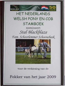 2009 Dit is het laatste berichtje uit 2009. 2009 was voor Stalzwartbles/Blackblaze stud een goed en mooi jaar. Het begon in februari al met de nominatie voor Welsh fokker van het jaar 2008, daarna volgden nog vele successen in de pony- en schapenfokkerij met als hoogte punt het Nationale Veulenkampioenschap van Blackblaze Cavallino. Ook de vele contacten met collega fokkers geven altijd weer een leuke extra dimensie aan het fokken. Bij deze willen wij alle trouwe lezers bedanken voor hun reacties en wensen iedereen het allerbeste voor 2010. Ram 20263-00659 dood Na vijf jaar trouwe dienst als dekram en waakhond over de kudde hebben we moeten besluiten om ram 20263-00659 in te laten slapen. In de zomer had hij al ernstige gezondheid problemen maar na een intensieve medische behandeling leek hij er voor het dekseizoen weer optimaal voor te staan. Echter gedurende de dekperiode kwamen de problemen weer terug en hebben we afscheid van deze topper moeten nemen. Helaas zijn de ooien die door deze 91 punten ram waren gedekt ook niet drachtig zodat we er geen nakomelingen meer van krijgen. De helft van alle aanwezige schapen bestaat momenteel uit dochters en kleindochters zodat zijn bloedvoering niet voor de fokkerij verloren gaat. Technische Problemen Als u dit leest is het goed. In verband met enige technische problemen bij KPN zijn we een tijdje uit de lucht geweest. Ik hoop dat we vanaf nu de site weer regelmatig kunnen uploaden en kunnen blijven bekijken Vier drachtige merries Zoals het nu laat aanzien krijgen we uit de volgende combinaties een veulen in 2010 - Vechtzicht´s Hylife x Ysselvliedt´s Yvenduma - Wian Noelle x Colne Taboo - Blackblaze Charlotte x Vechtzicht´s Comet - Blackblaze Hylyte x Meedenblik´s Fabris. Partiële Veulen verkoop De beide hengstveulens Blackblaze Nobillis en Blackblaze Cavallino zullen in samenwerking met de Fam. Holties opgefokt gaan worden. Texelaar dekram 2009 Ook in 2009 worden alle texelaar ooien weer door een topram van de firma J & J Dorgelo uit Schoonebeek gedekt. Filmpjes toegevoegd Klik HIER om naar de bladzijde met de div. filmpjes te gaan Nieuwe dekram 2009 Begin oktober is onze nieuwe dekram gearriveerd. Ram 20358-01001 is gefokt door D.J.Bonhof uit Oene. Deze ram is in samenwerking met G.J.Lucas uit Nieuw Schoonebeek aangekocht . Ram 1001 behaalde op de Nationale keuring 2009 een 1A premie en werd vierde in de kampioensring. Onze verwachtingen van deze ram zijn erg hoog mede ook vanwege het feit dat deze ram zowel van vaders als van moeders zijde bloed voert van de legendarische ram 122 die hier zoveel heeft verbeterd. Ramlam 20263-00888 Ram 20263-00888 is ook ARR/ARR en heeft als vader onze Belgische ram Arne. Het was de bedoeling om deze ram met een inteelt vrije pedigree op een aantal ooien te gaan gebruiken en dan na het dekseizoen te verkopen. Door verschillende oorzaken heb ik echter moeten besluiten om deze ram voor het dekseizoen al te verkopen. Hij dekt nu de ooien van collega zwartblesfokker Martin Weghorst uit Oud Ootmarsum en is daarna eventueel weer te koop. Schapen TE KOOP Ramlam te koop. (klik hier) verkocht!! Nieuwe dekram 2009 Op de valreep heeft Stalzwartbles deze jonge ram van de slager weten te redden en zal op een groot aantal nakomelingen van onze oude topram 20263-00659 worden ingezet. Door zijn unieke afstamming is hij totaal onverwant aan deze topper van 91 pnt. en bovendien is hij ARR/ARR want men in den lande ook belangrijk schijnt te vinden. Blackblaze Cavallino Nationaal Kampioen Blackblaze Cavallino is in Kootwijk Nationaal Veulenkampioen 2009 sectie A geworden. Hiermee is hij de opvolger van zijn stalgenote Blackblaze Hyanel die in 2008 veulenkampioen werd. Na een zware strijd om het hengstveulen kampioenschap moest er s´middags in de grote ring gestreden worden tegen het beste merrieveulen. Na een spannende strijd waarbij Cavallino (v.Vollenhof´s Hynod) zich gesteund door luide toejuichingen nog eens extra liet zien kwam het verlossende woord: Veulenkampioen sectie A 2009 Blackblaze Cavallino Onze dank gaat in het bijzonder uit naar de fam. Scheltens en het Ysselvliedt team van Yvette en Harold Zoet uit Wezep, waarmee we samen de ponys hebben klaargemaakt en geshowd. Als klap op de vuurpijl bij terugkeer in Schoonebeek een warm onthaal door vrienden, familie en buren. (klik hier voor een sfeer reportage) Vechtzicht´s Caprice De stermerrie Vechtzicht´s Caprice is op de centrale merriekeuring "voorlopig keur" keur geworden. Deze bruine dochter van de elite hengst Vechtzicht Harmony liet aan de hand van Yvette Zoet zien over extra beweging te beschikken en werd in een groot veld van 18 ster merries uitstekend derde. Tevens is Caprice de moeder van het kampioensveulen Cavallino. Zwartbles keuring Door het Welsh Event 2009 konden we niet op de nationale Zwartbles keuring zijn. Ondanks tijdgebrek en afzegging van de voorbrenger is het toch nog gelukt om 1 ooi keuringsklaar op de keuring te krijgen. Dankzij G.J.Lucas die ooi 20263-00804 heeft meegenomen en laten voorbrengen zijn we weer een eerste premie ooi rijker. Door haar 1B premie mocht ze ook in de kampioensring lopen maar kon daar helaas geen potten breken. De door stal Zwartbles gebruikte ram 1146-00046 van G.J.Lucas werd ook 1b in zijn rubriek. Nieuwe Ram Op de nationale schapen keuring van het NZS heeft stal Zwartbles in samenwerking met dhr. Lucas uit Nieuw Schoonebeek een nieuwe ram gekocht. Dit ramlam dat 1A geplaatst werd in zijn rubriek is gefokt door dhr. D.Bonhof uit Oene. Eind september zal de ram arriveren en zullen er foto´s onder het hoofdstuk RAMMEN verschijnen. Schapen reductie Ooien enters lammeren te koop. (klik hier) Dragon Welshshow Onder het motto "meedoen is belangrijker dan winnen" zijn we met een viertal ponys naar de altijd gezellige Dragon Welshshow in Oldebroek geweest. Onder goede keurings omstandigheden hebben we beide jaarlingen Vechtzicht´s Christabel en Blackbblaze Hyanel enige keurings ervaring laten opdoen. De onwennigheid 